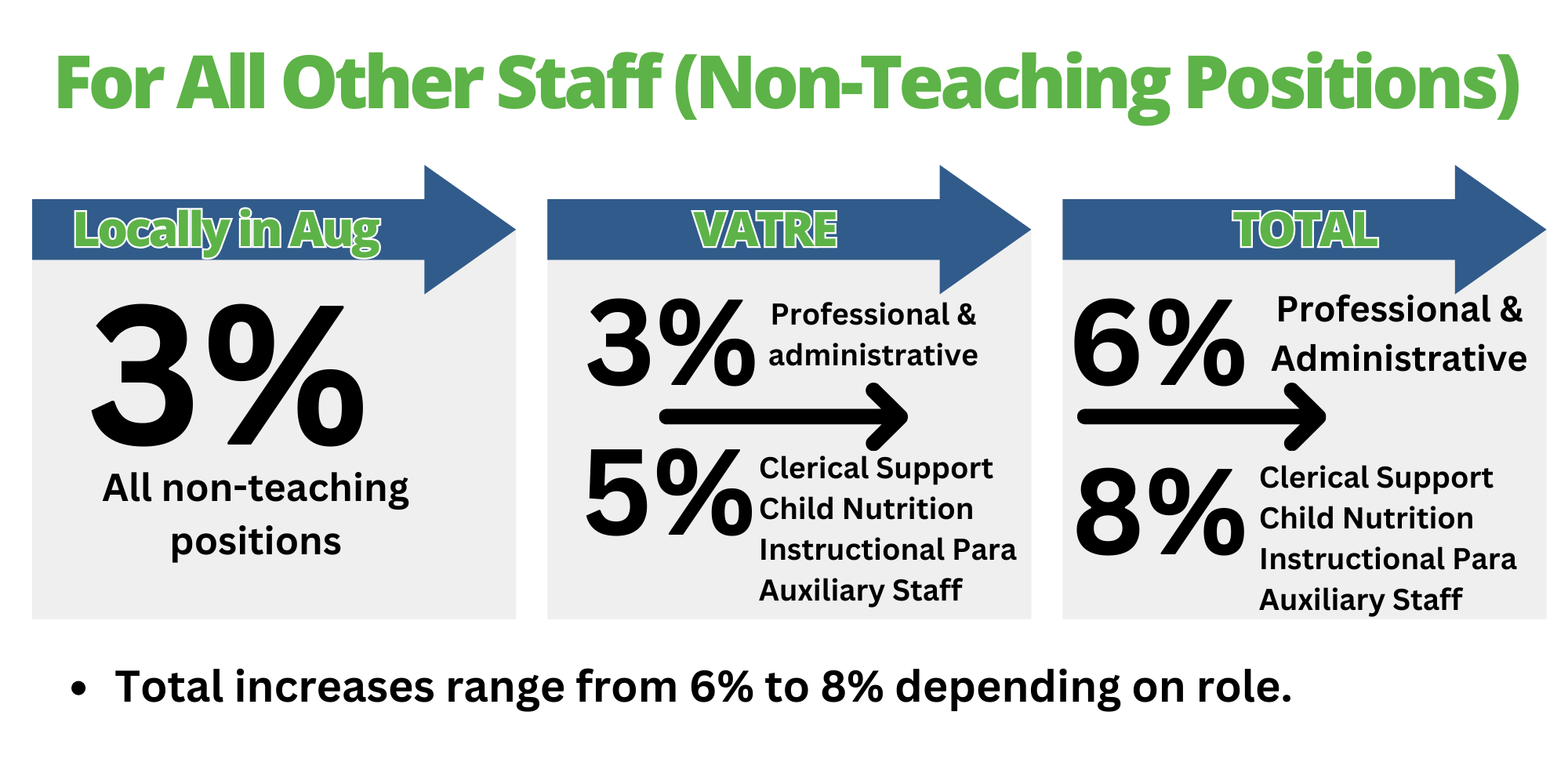 - All other staff received a 6–8% increase.