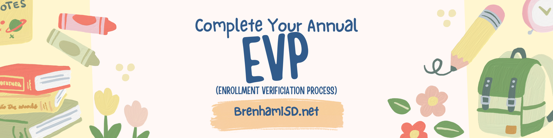 Please note: Every year, all parents and guardians are required to complete the Enrollment Verification Process for each student enrolled in Brenham ISD.