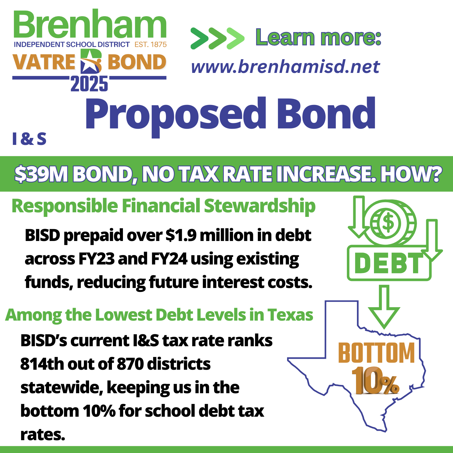Brenham ISD is deeply grateful to every individual who participated in this election — whether by voting, attending meetings, asking questions, or sharing factual information. This outcome is a testament to what can be achieved when a community unites around a common goal.