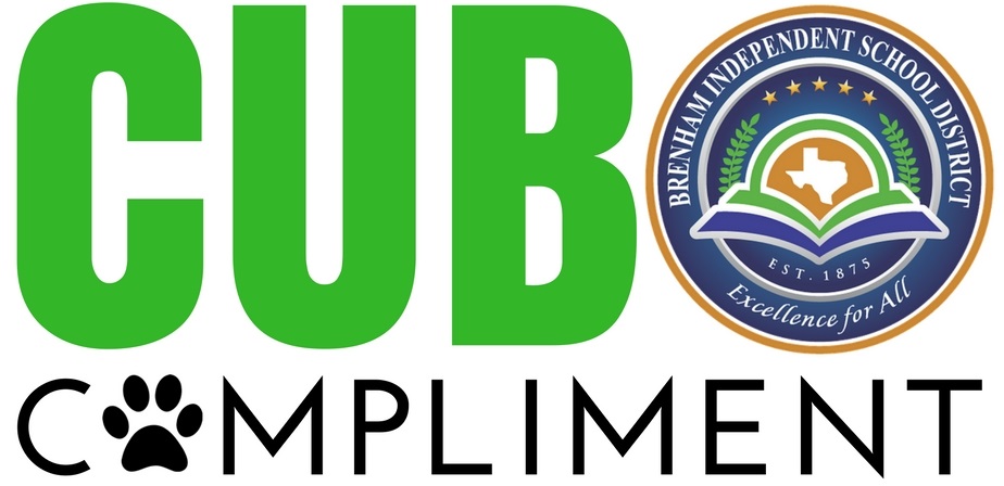 The Cub Compliment program is a way for you to salute any Brenham ISD employee who goes above and beyond what is expected. Whether you're a parent impressed with that special touch your child's teacher added to a moment, or you're a coworker who thinks the campus PEIMS clerk doesn't hear often enough about the great job she is doing - you can send a Cub Compliment! Anyone can nominate any Brenham ISD employee.